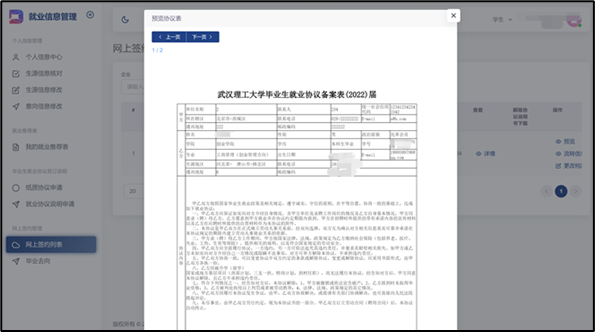 学生选择单位邀约记录应约,查看每一条协议内容,同意则确认提交,等待学校审核。学校审核通过后,学生可在申请页面下载 电子三方协议。电子三方协议是否需要打印成纸质版,由毕业生和单位协商决定,若需要则打印四份(单位和学生留1份,学院保留2份)。