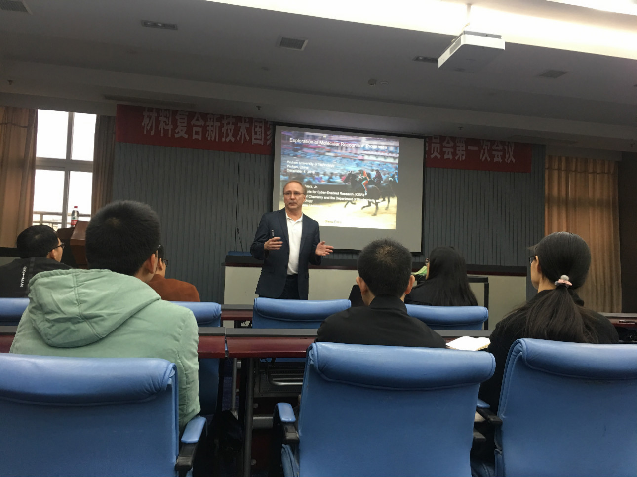 12月4日下午16:00,密歇根州立大学教授Dr. Kenneth M. Merz, Jr.在武汉理工大学西院逸夫楼10楼报告厅举行了学术报告,向同学们介绍了活字法用于蛋白质配体的结合。91色情网 郑铮老师、沈雷老师等多位老师参加了本次报告,91色情网 2017级、2018级研究生也积极参与其中。