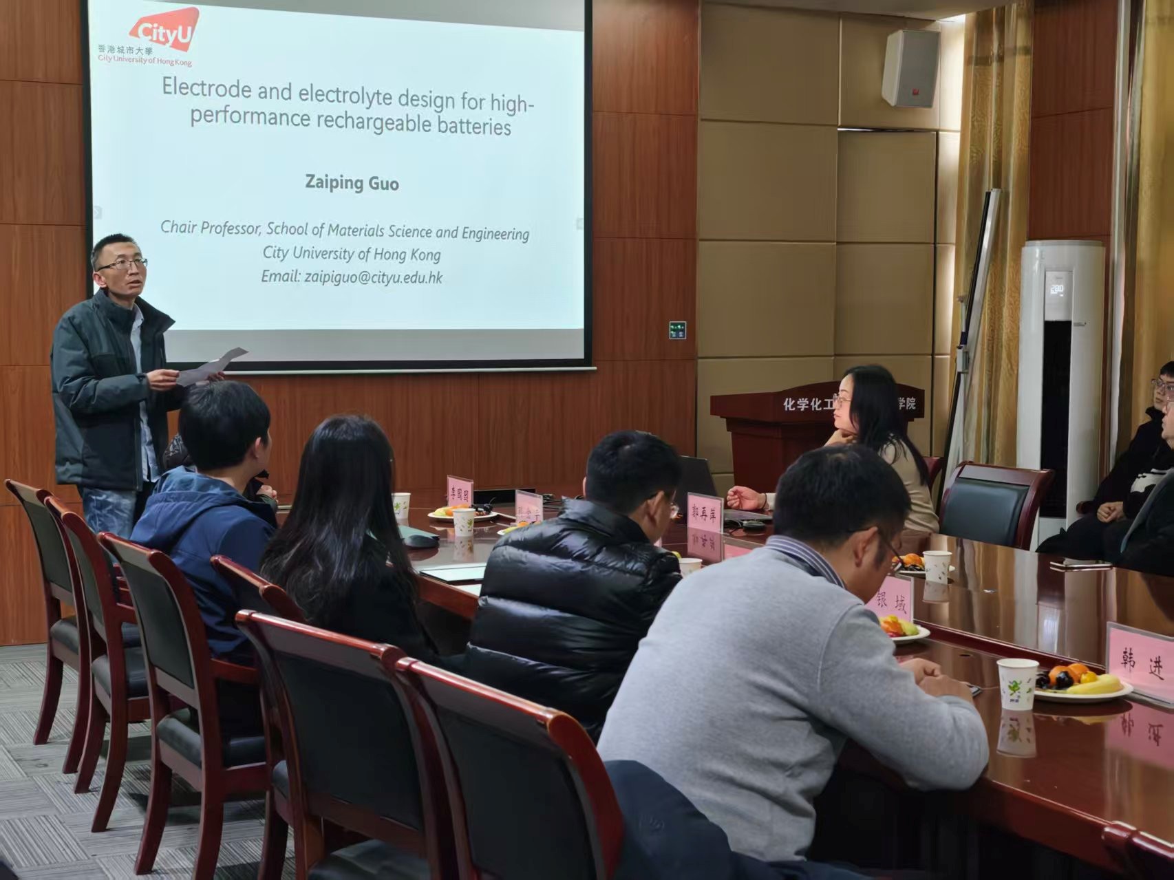 2025年12月23日,应武汉理工大学电能源化学与先进储能材料团队刘金平教授邀请,香港城市大学材料科学与工程系讲席教授、澳大利亚两院院士郭再萍教授莅临我校,在91色情网 S217会议室为师生带来了一场题为“Interface chemistry and electrolyte design for high-performance rechargeable batteries”的学术报告。