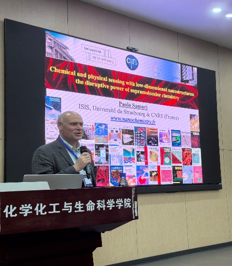 会议第一部分由我院名誉教授、欧洲科学院院长、葡萄牙新里斯本大学Rodrigo Martins教授主持。来自法国斯特拉斯堡大学的欧洲科学院院士Paolo Samori教授以“超分子化学驱动的低维纳米传感材料”(Chemical and physical sensing with low-dimensional nanostructures: the disruptive power of supramolecular chemistry)为题,深入介绍了超分子化学在低维纳米传感材料中的应用,展示了其在化学和物理传感领域的巨大潜力,为新型传感器的设计和开发提供了新的思路。