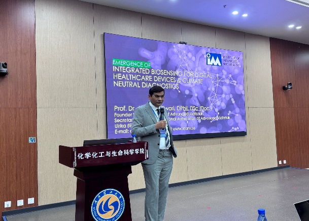 瑞典国际先进材料研究所所长Ashutosh Tiwari教授以“生物传感集成及其数字医疗设备和气候诊断应用”(Emergence of Integrated Biosensing for Digital Healthcare Devices and Climate-neutral Diagnostics)为题,介绍了生物传感技术在数字医疗设备和气候诊断领域的最新进展,强调了生物传感集成在实现精准医疗和应对气候变化中的重要作用。