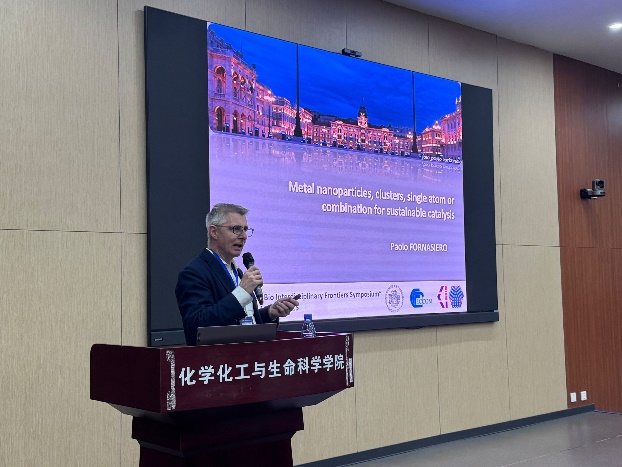 论坛第二部分由新加坡工程院院士John Wang教授主持。来自意大利的里雅斯特大学的欧洲科学院院士Paolo Fornasiero教授以“金属纳米粒子-团簇、单原子及其可持续催化”(Metal nanoparticles, clusters, single atom or combination for sustainable catalysis)为题,详细介绍了金属纳米材料在催化领域的应用与挑战。